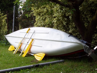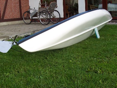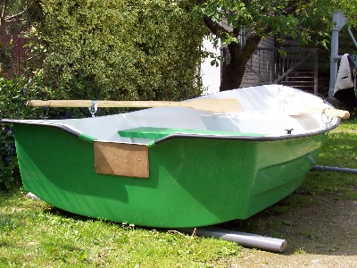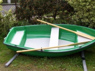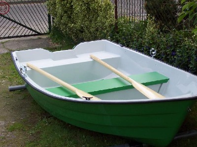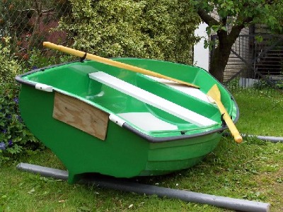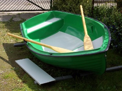 Dieses Ruderboot ist 260 cm lang 125 cm breit ,gewicht 37 kg.Das Boot ist doppelwandig und mit zwei Luftkammern versehen und dadurch unsikbar,speigelverstärkt-motorisierbar bis 5 PS. Es eignet sich als Angelboot auf kleinen Flüssen und Seen oder zum übersetzen.Das Material ist aus GFK (Glasfieberkunststoff) die Ruder sind aus Holz,die mittelkonsole ist herrausnehmbar.Preis 600 €