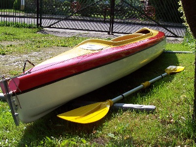 Dieses Kajak ist 470 cm lang und 75 cm breit und ca 40kg schwer. Das Material ist aus GFK (Glasfieberkunststoff).Dadurch das es ein Steuer besitzt läst es sich leicht manewrierern . Dieses Kajak kostet bei Abholung 800 €, inkl. zwei Doppelpaddeln . Desweiteren gibt es auch die möglichkeit zum Versand ,auf Anfrage (ca.150 € Deutschlandweit) .